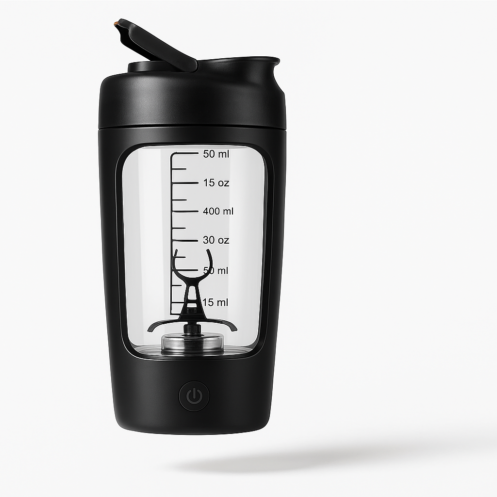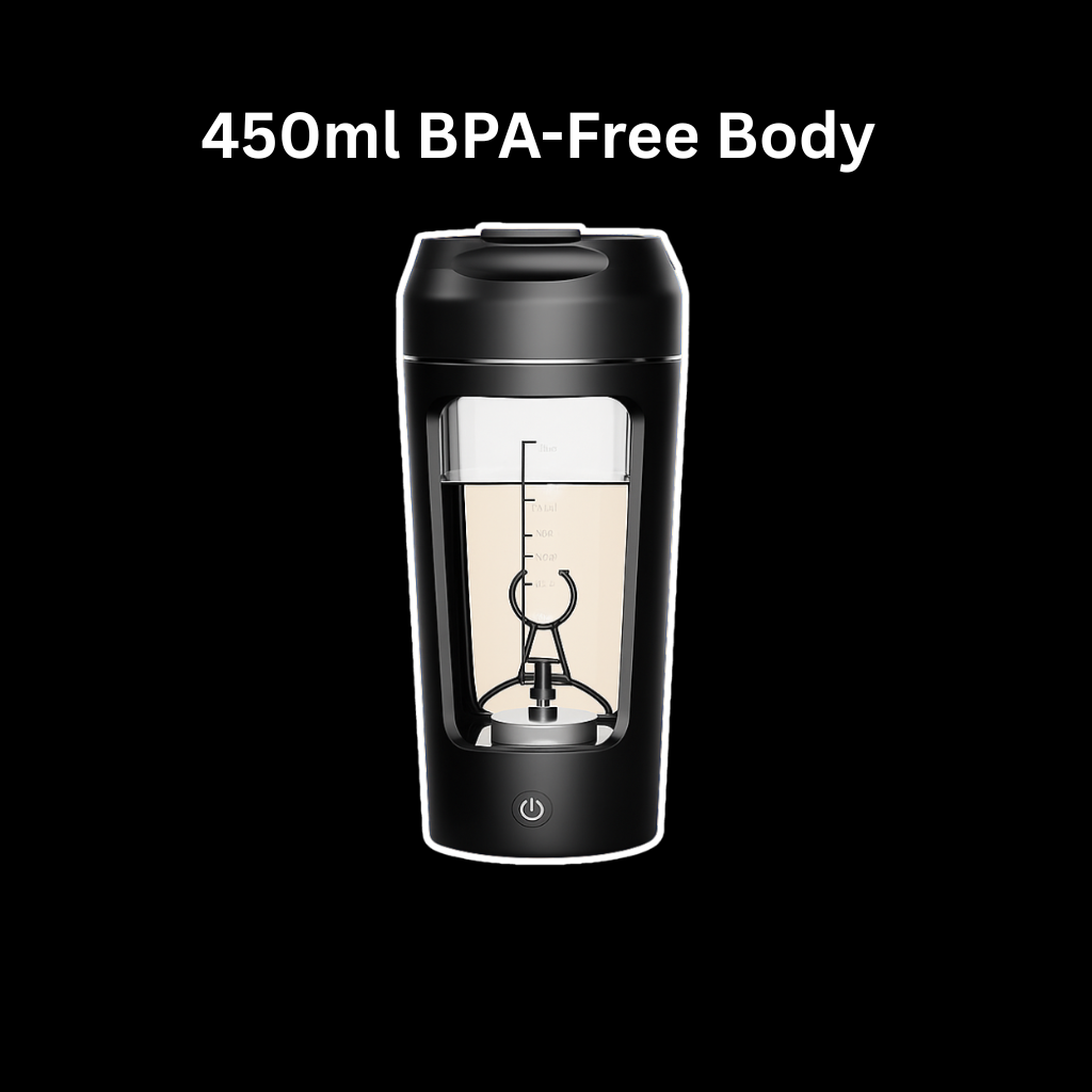 The MotionBlend Electric Shaker Bottle features a 7000RPM motor, USB rechargeable battery, and 450ml BPA-free body. Lightweight, leak-proof, and built for smooth, lump-free mixing—perfect for fitness and daily use.