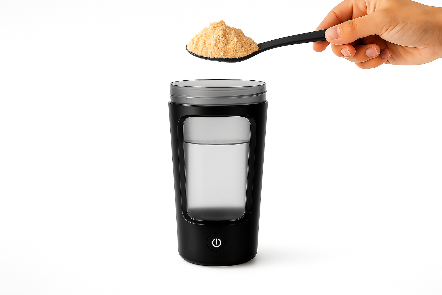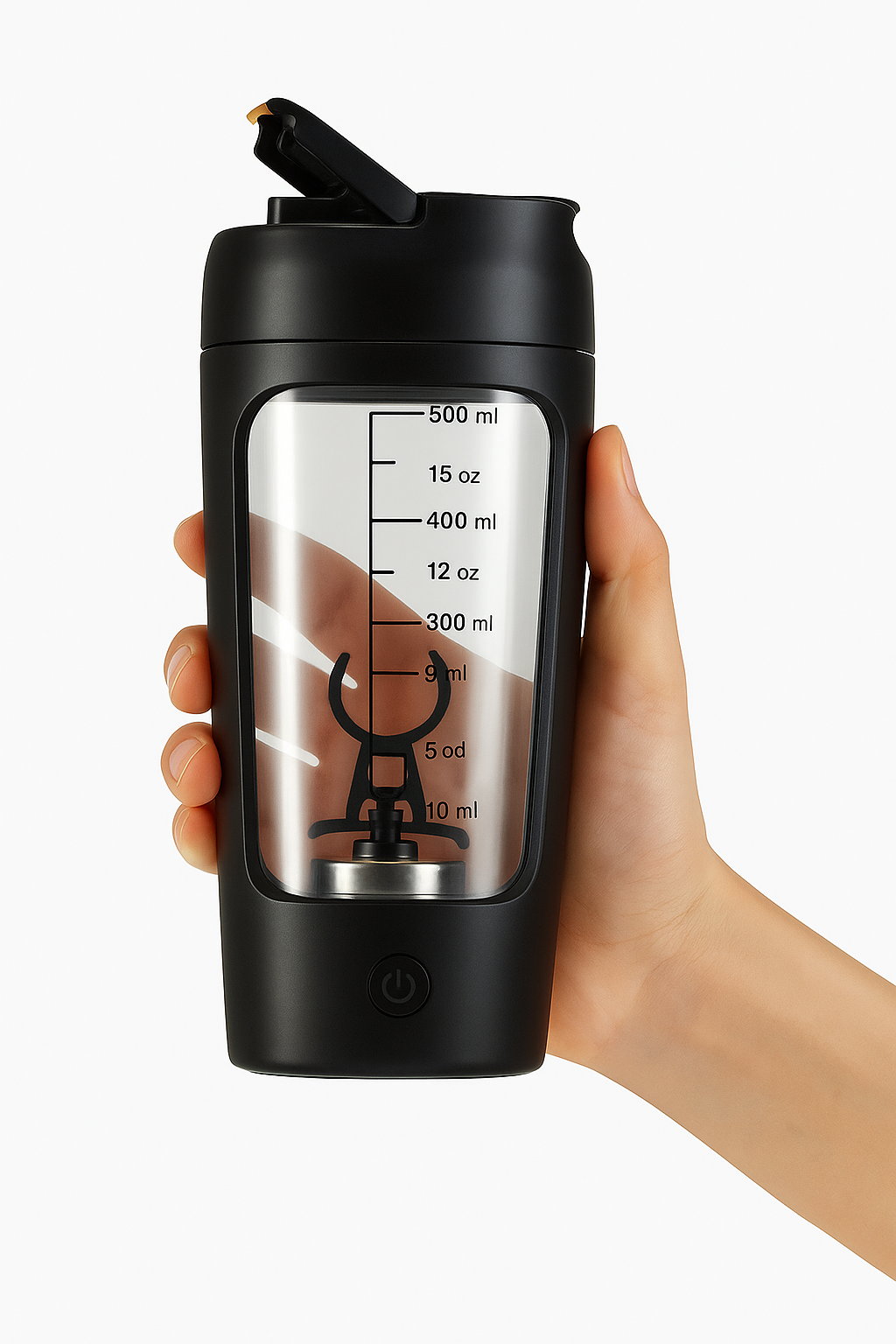 To use the MotionBlend Portable Shaker Bottle, simply fill it with 200–400ml of your preferred liquid such as water, milk, or juice. Add your desired amount of protein powder or supplement, then press the power button once to activate the automatic mixing system. The built-in motor will create a powerful vortex, blending your drink evenly within 10–15 seconds. Once the mixture is smooth, you can drink directly from the bottle or take it on the go.